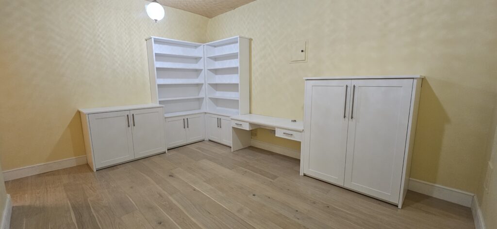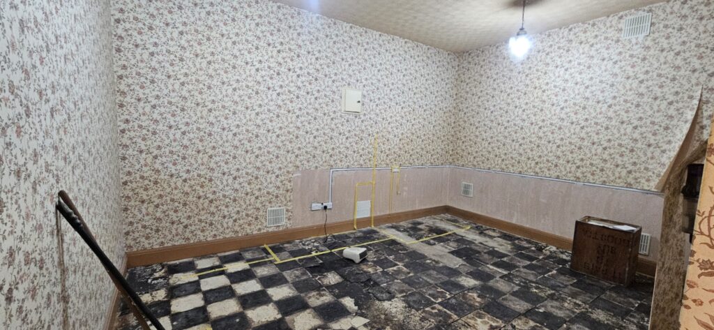 This space previously served as both an oil tank room and a coal storage area for this magnificent residence, many, many years ago! Upon removing the wallpaper, we discovered a coal chute that had been sealed off. We installed an engineered oak floor and hand crafted furniture according to the client’s requirements for the new library. What a transformation and a great space!