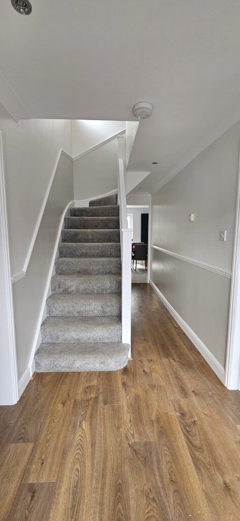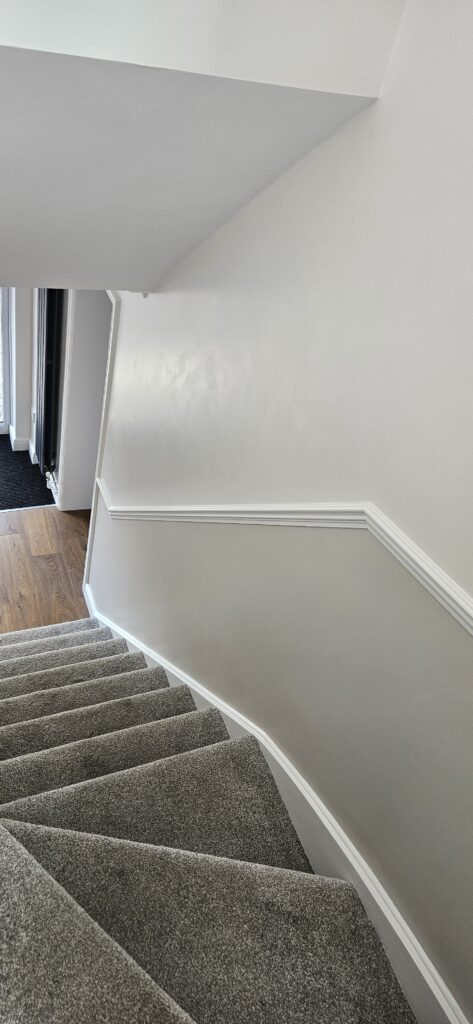 Enhance the appearance of your hall, stairs, and landing walls by incorporating a dado rail. This addition can impart a classic ambiance to your residence while maintaining a contemporary aesthetic.